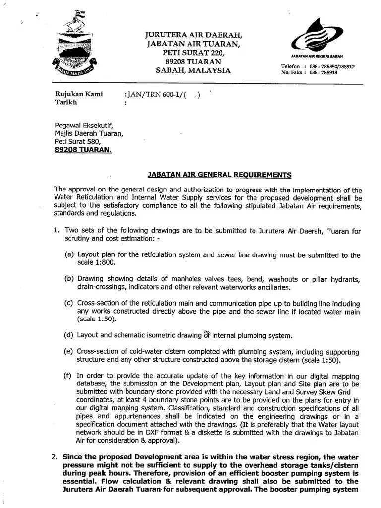 Jabatan air negeri sabah blok a, tingkat 6,wisma muis, beg berkunci 210, 88825 kota kinabalu, tel.